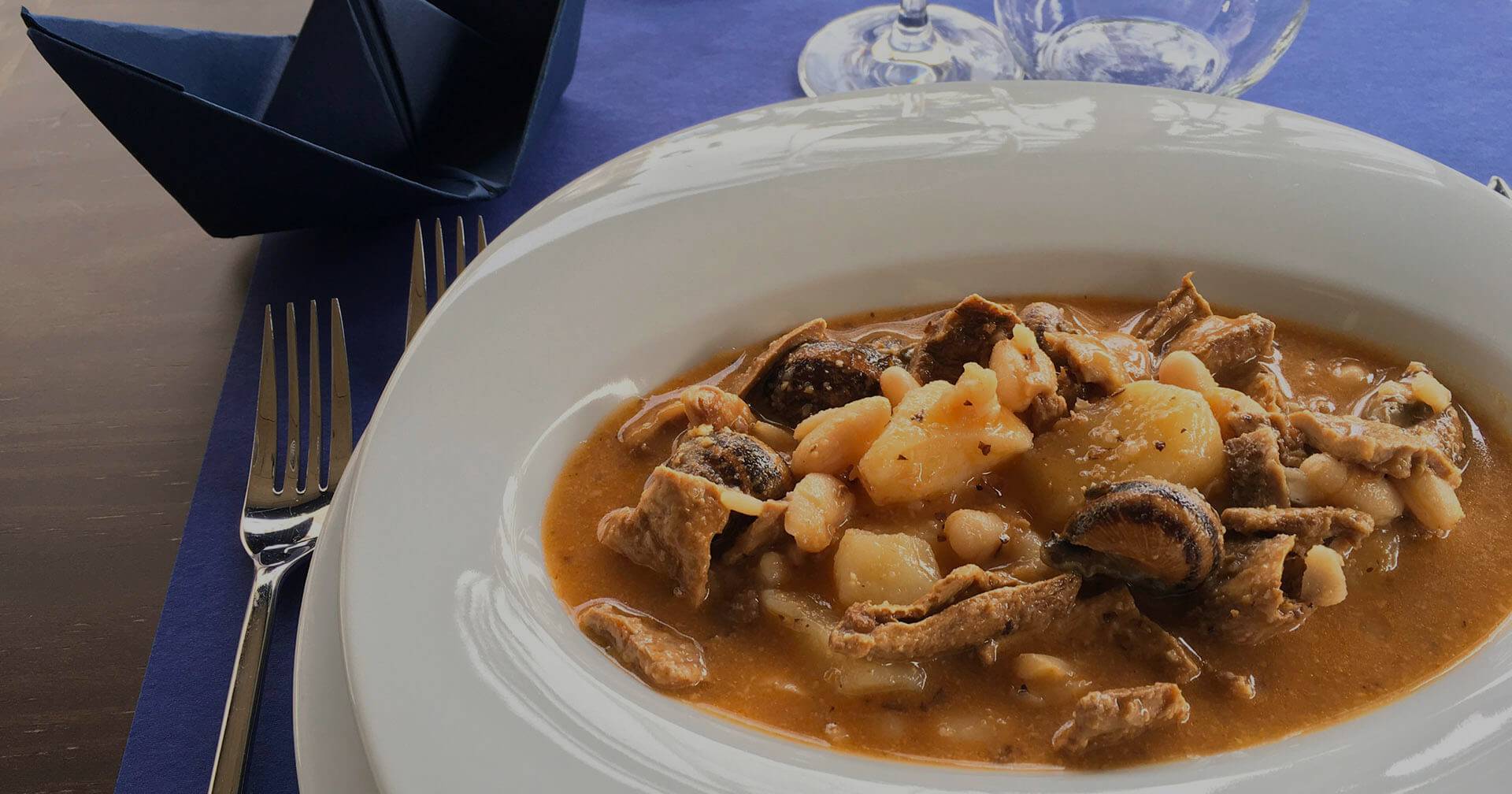 D’elaboració lenta, el sofregit és bàsic per a la degustació d’aquest plat. A base de nyores, ametlles torrades i alls, els artistes convidats són els cargols i la mongeta seca, acompanyats de patata.
